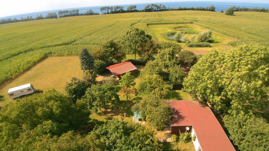 Der Ferien- Bungalow steht in unserem sehr gepflegtem und ruhigem Garten mit einem tollen Blick über die Felder auf die Ostsee.