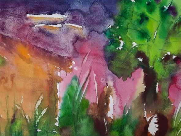Wie wundervoll ist das, den Farben zuzusehen und ihnen ihren freien Lauf zu lassen und nach dem „Zufall“ -sprinzip doch noch ein Gesicht zu geben. Eine Blüte, ein Tier oder eine Pflanze darin zu entdecken und Ihnen eine Form zu geben.